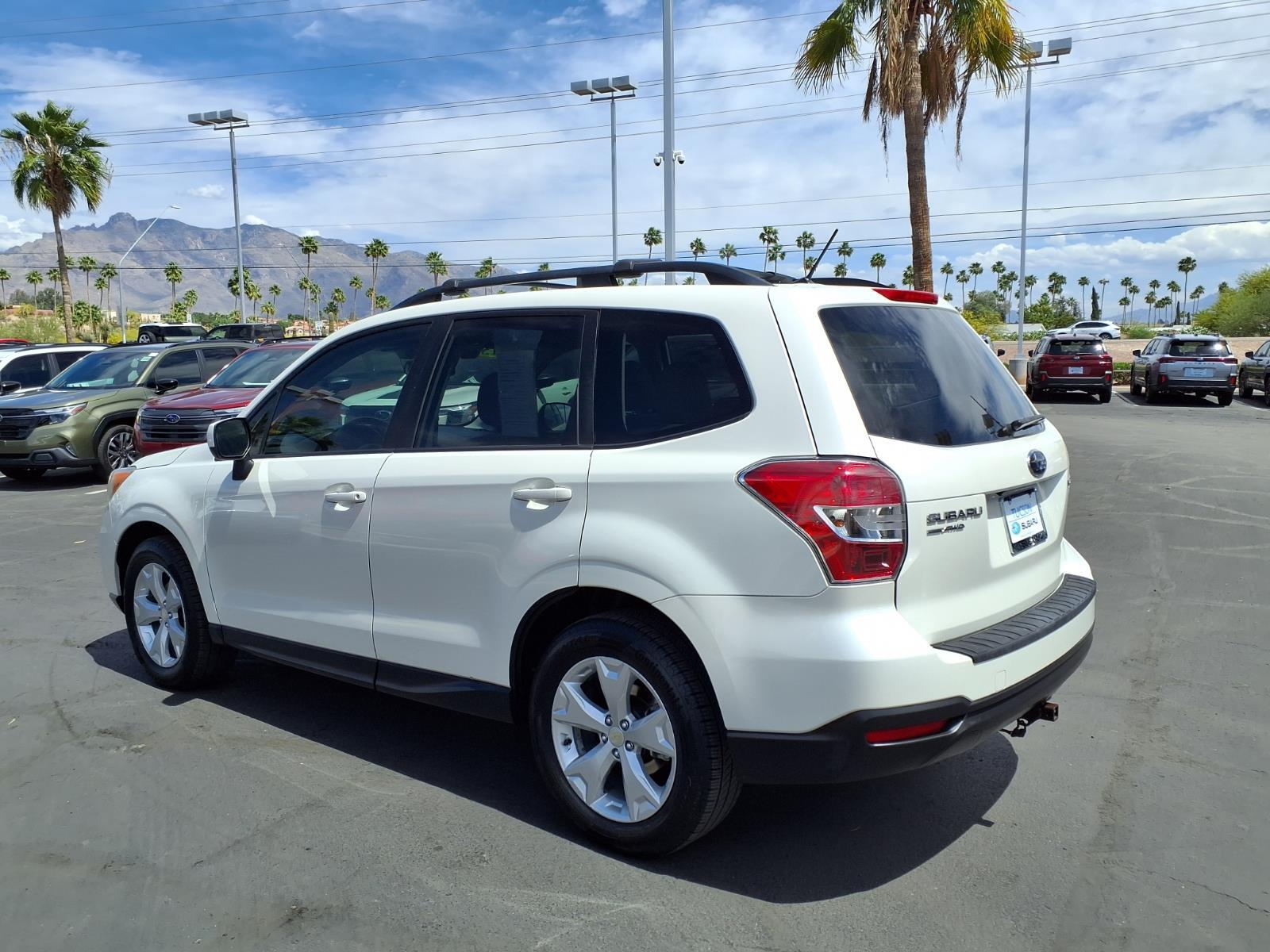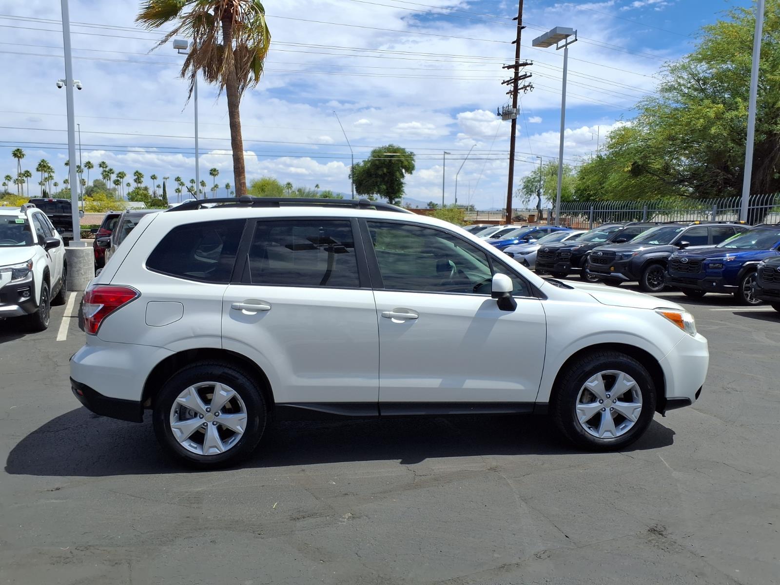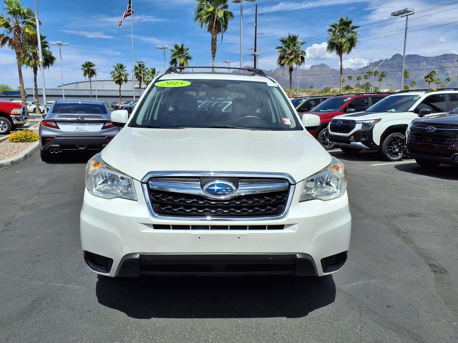 Driver Assist Technology And Utility! All-Weather Package Eyesight! Power Driver Seat and a Power Moonroof! From The Wheels That Slip To The Wheels That Grip! SYMMETRICAL ALL-WHEEL DRIVE! CARFAX One-Owner. Tucson Subaru is offering for sale this Satin White Pearl 2015 Subaru Forester 2.5i Premium AWD Lineartronic CVT 2.5L 4-Cylinder DOHC 16V VVT. With Subaru Symmetrical All-Wheel Drive You Dont Have To Fear The Roads Less Paved! Rain, Sleet, Snow And Shine! Load Up And Go Places Today ! Power Driver Seat and a Power Moonroof/Sunroof! All-Weather Package & EyeSight! Radio: AM/FM Stereo w/HD & Single CD Player, Bluetooth connectivity and USB port control with Steering wheel mounted audio controls! EyeSight is an extra set of eyes on the road, and if need be, an extra foot on the brake when you drive! EyeSight Driver Assist Technology is Adaptive Cruise Control, Pre-Collision Throttle Management, Pre-Collision Braking, Lane Departure and Sway Warning! 17Alloy Wheels, Exterior Parking Camera Rear, Heated Front Seats, Remote keyless entry, Speed control and More! Expect a relaxed, family-centered atmosphere that is committed to your satisfaction when you visit Tucson Subaru. Our Sales Team is the most knowledgeable, personable, and enjoyable in the industry. We listen to your needs and treat our customers with respect and appreciation in a honest and straightforward manner. Tucson Subaru offers a dedicated Internet Sales Department that allows you the ability to select your vehicle, negotiate a competitive price, and arrange for aggressive financing or lease alternatives - all in a friendly, hassle-free environment without ever leaving the comfort of your home or office. We promise the easiest car purchase you have ever made.