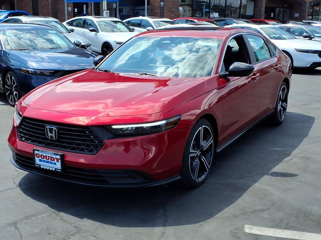 Honda makes dreams and Goudy Honda makes dreams come true. Get Honda Reliability at Goudy Hondas Everyday Low Prices! The Honda Accord Hybrid Sport is a 2025 model automobile that has been crafted with the latest technology. It features a 2.0 liter 4 cylinder engine that has been paired with a front wheel drive system, making it an ideal choice for drivers who want to enjoy the benefits of power and control. The car's striking exterior is made from a radiant red met, while the interior is finished in a sleek black bk. This automobile is sure to turn heads wherever it goes!