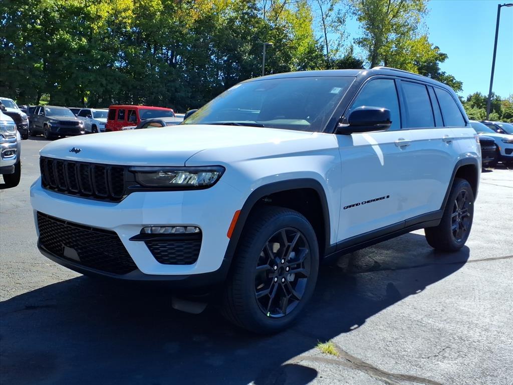 Bright White Clearcoat 2025 Jeep Grand Cherokee Limited 4WD 8-Speed Automatic 3.6L V6 24V VVT 4WD, 4-Wheel Disc Brakes, 6 Speakers, ABS brakes, Active Noise Control System, Air Conditioning, Alloy wheels, AM/FM radio: SiriusXM with 360L, Anti-whiplash front head restraints, Audio memory, Auto High-beam Headlights, Automatic temperature control, Black Painted Roof, Blackout Model, Brake assist, Bumpers: body-color, Capri Leatherette Seats, Compass, Delay-off headlights, Delete Limited Badge, Driver door bin, Driver vanity mirror, Dual front impact airbags, Dual front side impact airbags, Dual-Pane Panoramic Sunroof, Electronic Stability Control, Emergency communication system, Four wheel independent suspension, Front anti-roll bar, Front Bucket Seats, Front Center Armrest w/Storage, Front dual zone A/C, Front fog lights, Front License Plate Bracket, Front reading lights, Fully automatic headlights, Garage door transmitter, Gloss Black Exterior Accents, Heated door mirrors, Heated front seats, Heated rear seats, Heated steering wheel, Illuminated entry, Knee airbag, Low tire pressure warning, Memory seat, Model Year Tracking, Navigation System, Normal Duty Suspension, Occupant sensing airbag, Outside temperature display, Overhead airbag, Overhead console, Panic alarm, ParkView Rear Back-Up Camera, Passenger door bin, Passenger vanity mirror, Power door mirrors, Power driver seat, Power passenger seat, Power steering, Power windows, Quick Order Package 22E, Radio data system, Rear anti-roll bar, Rear reading lights, Rear window defroster, Rear window wiper, Remote keyless entry, Security system, Speed control, Speed-Sensitive Wipers, Split folding rear seat, Spoiler, Steering wheel mounted audio controls, Tachometer, Telescoping steering wheel, Tilt steering wheel, Traction control, Trip computer, Turn signal indicator mirrors, Variably intermittent wipers, Voltmeter, Wheels: 18x 8Polished/Painted Aluminum, Wheels: 20x 8.5Black Painted Aluminum. 19/26 City/Highway MPG