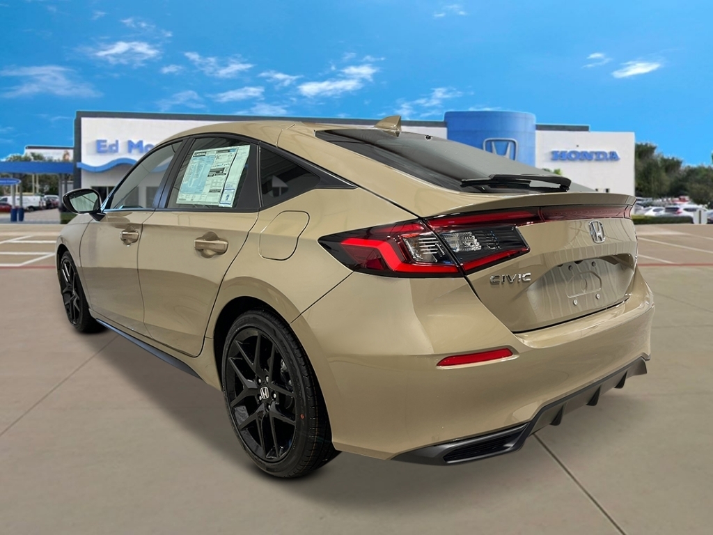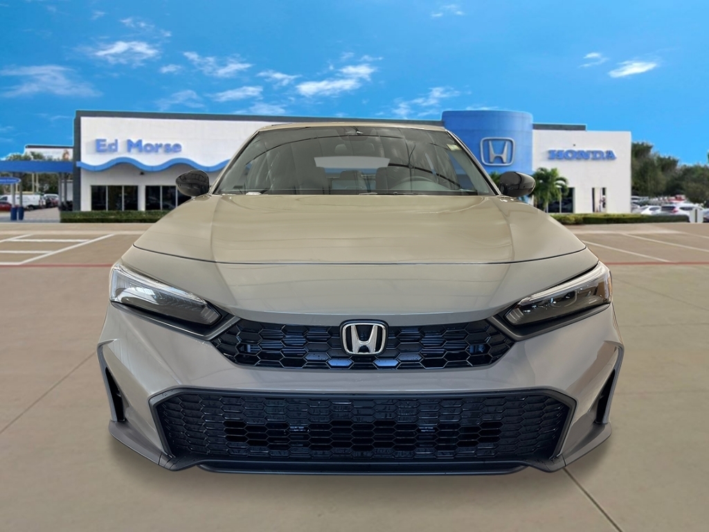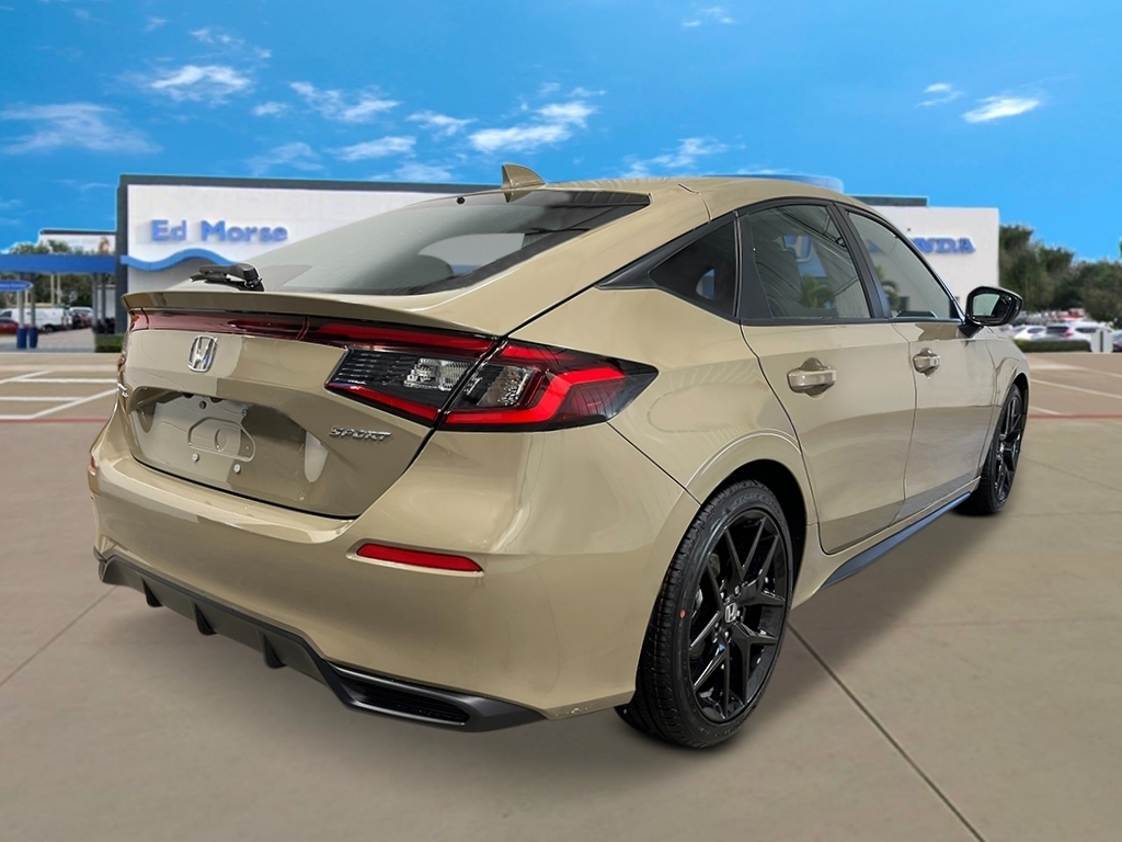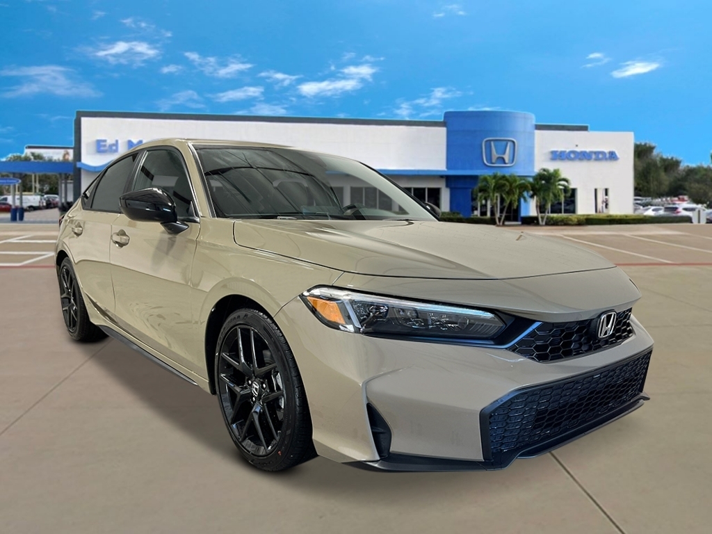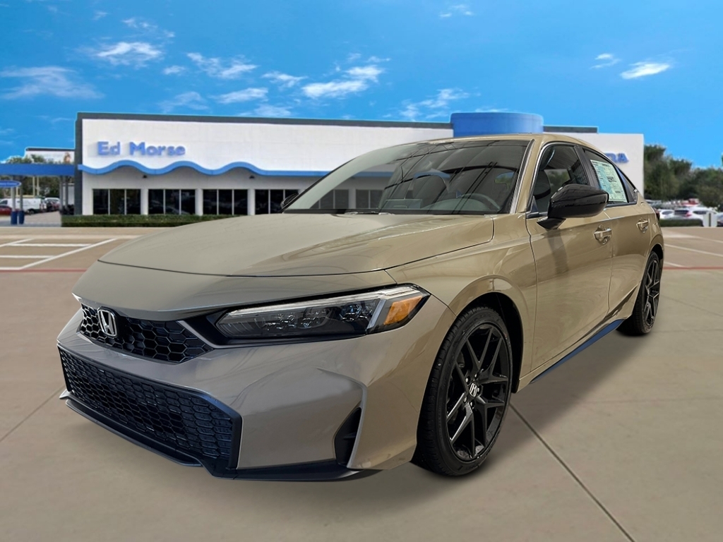 Sand Dune Pearl 2026 Honda Civic Sport 30/38 City/Highway MPG 4-Wheel Disc Brakes, 8 Speakers, ABS brakes, Adaptive Cruise Control: Adaptive Cruise Control (ACC) with Low-Speed Follow, Air Conditioning, Alloy wheels, AM/FM radio, Apple CarPlay/Android Auto, Auto High-beam Headlights, Automatic temperature control, Blind Spot Information (BSI) System warning, Brake assist, Bumpers: body-color, Cloth/Leatherette Seating Surfaces, Delay-off headlights, Driver door bin, Driver vanity mirror, Dual front impact airbags, Dual front side impact airbags, Electronic Stability Control, Emergency communication system: HondaLink, Exterior Parking Camera Rear, Four wheel independent suspension, Front anti-roll bar, Front Bucket Seats, Front Center Armrest, Front reading lights, Fully automatic headlights, Heated door mirrors, HondaLink, Illuminated entry, Knee airbag, Lane departure: Lane Keeping Assist System (LKAS) active, Leather Shift Knob, Low tire pressure warning, Occupant sensing airbag, Outside temperature display, Overhead airbag, Panic alarm, Passenger door bin, Passenger vanity mirror, Power door mirrors, Power steering, Power windows, Radio data system, Radio: 180-Watt Audio System, Rear anti-roll bar, Rear side impact airbag, Rear window defroster, Rear window wiper, Remote keyless entry, Security system, Speed control, Speed-sensing steering, Split folding rear seat, Steering wheel mounted audio controls, Tachometer, Telescoping steering wheel, Tilt steering wheel, Traction control, Trip computer, and Wheels: 18Gloss Black Alloy.
