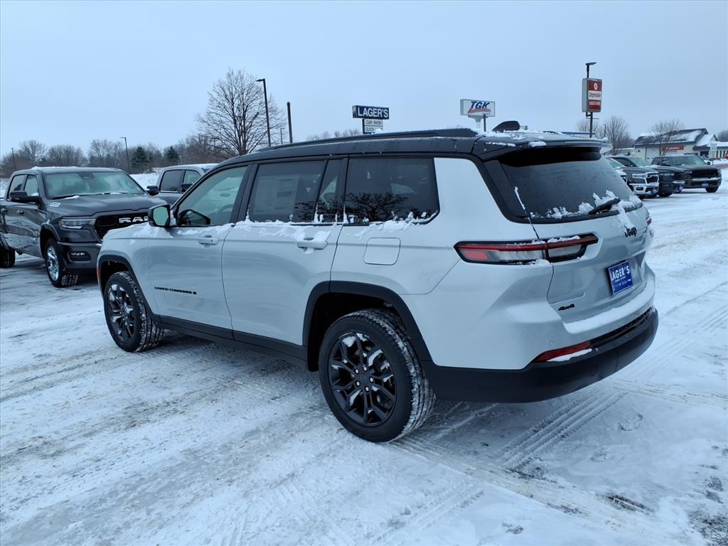 Lager's of Mankato is proud to present this 2025 Jeep Grand Cherokee L Limited Blackout Model (Black Painted Roof, Delete Limited Badge, Dual-Pane Panoramic Sunroof, Gloss Black Exterior Accents, Interior Rear Facing Camera, and Wheels: 20 x 8.5 Black Painted Aluminum), Quick Order Package 22E, Trailer Tow Package (220 Amp Alternator, 7 and 4 Pin Wiring Harness, Automatic Headlamp Leveling System, Class IV Receiver Hitch, Dual Exhaust Tips, Heavy-Duty Engine Cooling, Rear Load Leveling Suspension, and Trailer Hitch Zoom), 2nd Row 60/40 Bench with Manual Tip/Slide, 2nd Row Seat Center Armrest/Cupholders, 3 Rear Seat Head Restraints, 3.45 Rear Axle Ratio, 3rd row seats: split-bench, 4-Wheel Disc Brakes, 6 Speakers, 7-Passenger Seating, ABS brakes, Active Noise Control System, Air Conditioning, Alloy wheels, AM/FM radio: SiriusXM with 360L, Anti-whiplash front head restraints, Audio memory, Auto High-beam Headlights, Automatic temperature control, Brake assist, Bumpers: body-color, Capri Leatherette Seats, Center Rear 3-Point Seat Belt, Compass, Delay-off headlights, Driver door bin, Driver vanity mirror, Dual front impact airbags, Dual front side impact airbags, Electronic Stability Control, Emergency communication system, Four wheel independent suspension, Front anti-roll bar, Front Bucket Seats, Front Center Armrest w/Storage, Front dual zone A/C, Front fog lights, Front License Plate Bracket, Front reading lights, Fully automatic headlights, Garage door transmitter, Heated door mirrors, Heated front seats, Heated rear seats, Heated steering wheel, Illuminated entry, Knee airbag, Low tire pressure warning, Manual Fold Seatbacks, Memory seat, Model Year Tracking, Navigation System, Normal Duty Suspension, Occupant sensing airbag, Outside temperature display, Overhead airbag, Overhead console, Panic alarm, ParkView Rear Back-Up Camera, Passenger door bin, Passenger vanity mirror, Power door mirrors, Power driver seat, Power Liftgate, Power passenger seat, Power steering, Power windows, Radio data system, Radio: Uconnect 5 Nav with 10.1 Display, Rear air conditioning, Rear anti-roll bar, Rear reading lights, Rear window defroster, Rear window wiper, Reclining 3rd row seat, Remote keyless entry, Security system, Speed control, Speed-Sensitive Wipers, Split folding rear seat, Spoiler, Steering wheel mounted audio controls, Tachometer, Telescoping steering wheel, Tilt steering wheel, Traction control, Trip computer, Turn signal indicator mirrors, Variably