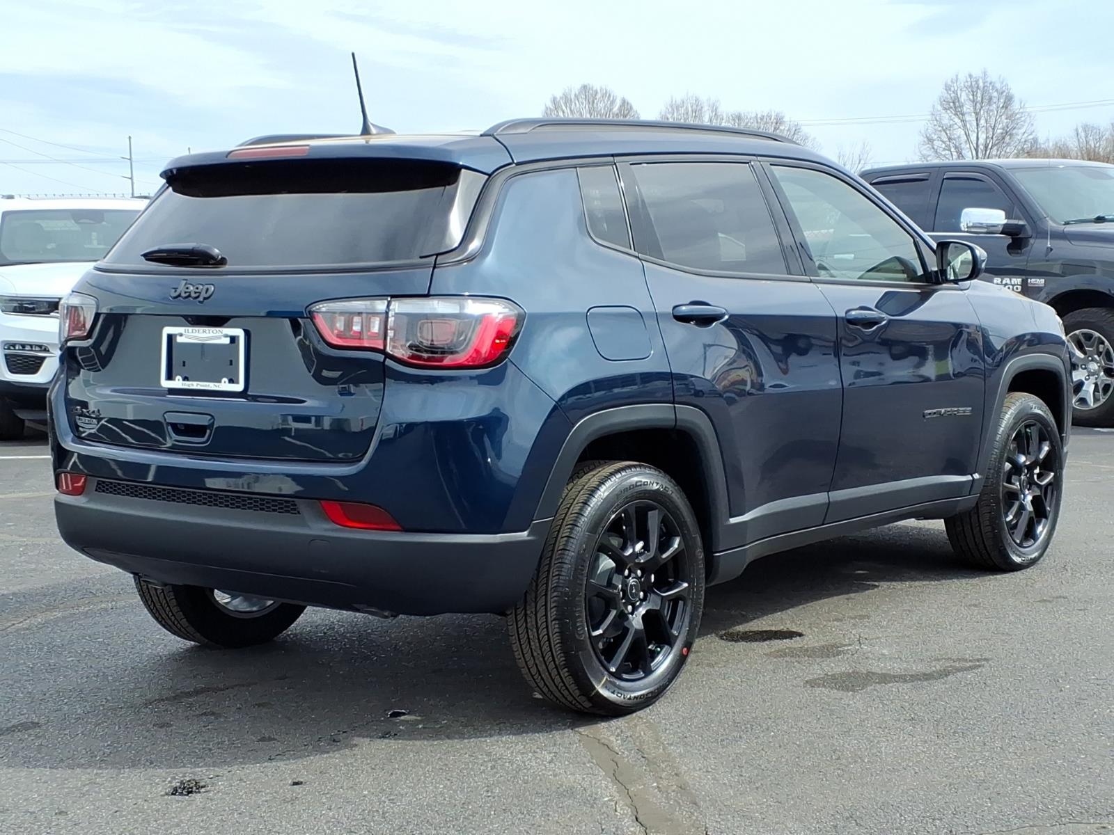 Summary*All New ILDERTON CDJR Advertised Prices Includes all manufacturer incentives that customers may or may not qualify for **All New ILDERTON CDJR Advertised Prices exclude all taxes, tag, doc fee $999, title, registration fees, government fees and dealer installed add-ons. ***All ILDERTON CDJR Advertised Prices Include $1,000 FINANCE CASH ****ILDERTON CDJR Finance Cash is only available on preowned vehicles for prime lender conventional financing arranged by ILDERTON CDJR with a 620 score pulled by dealer, some lender and term restrictions may apply. Offer valid only on preowned vehicles in stock at the time of purchase.EquipmentIts Forward Collision Warning feature alerts drivers to potential front-end collisions. Keep your hands warm all winter with a heated steering wheel in the Jeep Compass . The vehicle offers Automatic Climate Control for personalized comfort. This unit is equipped with the latest generation of XM/Sirius Radio. See whats behind you with the back up camera on this model. This vehicle features a hands-free Bluetooth phone system. Start the Jeep Compass from inside with remote start. Impresses the most discerning driver with the deep polished blue exterior on the vehicle. Set the temperature exactly where you are most comfortable in this unit. The fan speed and temperature will automatically adjust to maintain your preferred zone climate. Enjoy the convenience of the power liftgate on this unit. The vehicle has a 4 Cyl, 2.0L high output engine. This vehicle has four wheel drive capabilities. It features cruise control for long trips.PackagesQuick Order Package 29N Altitude: Gloss Black Surround/Neutral Gray Rings; 10.1Touchscreen Display; Black Day Light Opening Moldings; 18X 7Gloss Black Painted Aluminum Wheels; Altitude Special Edition; Neutral Gray Exterior Badging; Piano Black Interior Accents; Sliding Sun Visors W/Illuminated Mirrors. Fathom Blue Pearl Coat. MyFlexCare Service Plan. **Equipment listed is based on original vehicle build and subject to change. Please confirm the accuracy of the included equipment by calling the dealer prior to purchase.**