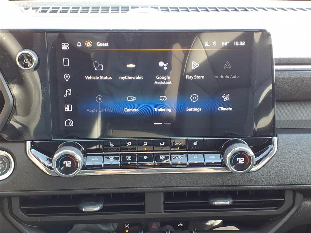Demo/CTP units may have more mileage than a normal new retail unit. Technology Package (Adaptive Cruise Control, HD Surround Vision, and Rear Pedestrian Alert), Trail Boss Convenience Package II (4-Spoke Wrapped Steering Wheel, 8-Way Power Driver Seat Adjuster, Driver & Front Passenger Heated Seats, Evotex Seat Trim, Heated Steering Wheel, Power Driver Lumbar Control Seat Adjuster, Remote Vehicle Starter System, and Wireless Phone Charging), 4WD, 1st & 2nd Row All-Weather Floor Liner (LPO), 3.42 Rear Axle Ratio, 4-Way Manual Passenger Seat Adjuster, 4-Wheel Disc Brakes, 6 Speakers, 6-Speaker Audio System Feature, 6-Way Manual Driver Seat Adjuster, ABS brakes, Air Conditioning, Alloy wheels, AM/FM radio: SiriusXM with 360L, Apple CarPlay/Android Auto, Auto High-beam Headlights, Automatic Emergency Braking, Automatic temperature control, Brake assist, Chevy Safety Assist, Cloth Seat Trim, Compass, Delay-off headlights, Driver door bin, Driver vanity mirror, Dual front impact airbags, Dual front side impact airbags, Electronic Stability Control, Emergency communication system: OnStar, Following Distance Indicator, Forward Collision Alert, Front anti-roll bar, Front Bucket Seats, Front Center Armrest, Front dual zone A/C, Front Pedestrian & Bicyclist Braking, Front wheel independent suspension, Heated door mirrors, Illuminated entry, IntelliBeam Automatic High Beam On/Off, Lane Keep Assist w/Lane Departure Warning, Low tire pressure warning, Navigation System, Occupant sensing airbag, Outside temperature display, Overhead airbag, Overhead console, Panic alarm, Passenger door bin, Passenger vanity mirror, Power door mirrors, Power steering, Power windows, Radio data system, Radio: 11.3Diagonal Advanced Color LCD Display, Rear reading lights, Rear step bumper, Rear window defroster, Remote keyless entry, Security system, SiriusXM w/360L Trial Subscription, Speed control, Speed-sensing steering, Split folding rear seat, Steering Wheel Mounted Audio Controls, Steering wheel mounted audio controls, Tachometer, Tilt steering wheel, Traction control, Trip computer, Variably intermittent wipers, Wheels: 18x 8.5Black High Gloss Aluminum, Wheels: 20x 9High Gloss Black Aluminum, and Wireless Phone Projection. Factory MSRP: $47,135$2,500 off MSRP!Black 2026 Chevrolet Colorado Trail Boss Trail Boss 8-Speed Automatic***We have our own aftermarket company that offers a wide variety of accessories. VIP Available Options for purchase: Bluetooth, Window Tint, Weathert