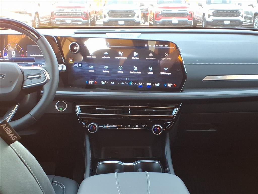 Demo/CTP units may have more mileage than a normal new retail unit. Driver Confidence Package (HD Surround Vision, Key Card, Power Outlet, Rear Camera Mirror, Rear Pedestrian Alert, and Traffic Sign Recognition), Enhanced Driving Package (3 Years OnStar One (R9M), Active Noise Cancellation, Bose Premium 12-Speaker Audio System Feature, Driver Attention Assist, Enhanced Automatic Parking Assist, and Super Cruise), Floor Liner Package (LPO) (1st & 2nd Row All-Weather Floor Liners (LPO), 3rd Row All-Weather Floor Liner (LPO), and Integrated Cargo Liner (LPO)), Midnight/Sport Edition (High Gloss Black Door Upper Molding and Wheels: 20High Gloss Black Painted Aluminum), Preferred Equipment Group 1LT, 3rd row seats: split-bench, 4-Way Manual Front Passenger Seat Adjuster, 4-Wheel Disc Brakes, 6 Speakers, 6-Speaker Audio System Feature, 8-Way Power Driver Seat Adjuster, ABS brakes, Air Conditioning, Alloy wheels, AM/FM radio: SiriusXM with 360L, Apple CarPlay/Android Auto, Auto High-beam Headlights, Automatic temperature control, Brake assist, Bumpers: body-color, Child-Seat-Sensing Airbag, Compass, Delay-off headlights, Driver door bin, Driver vanity mirror, Dual front impact airbags, Dual front side impact airbags, Electronic Stability Control, Emergency communication system: OnStar, Four wheel independent suspension, Front anti-roll bar, Front Bucket Seats, Front Center Armrest, Front dual zone A/C, Front reading lights, Fully automatic headlights, Heated door mirrors, Heated Driver & Front Passenger Seats, Heated front seats, Heated steering wheel, Illuminated entry, Low tire pressure warning, Navigation System, Occupant sensing airbag, Outside temperature display, Overhead airbag, Overhead console, Panic alarm, Passenger door bin, Passenger vanity mirror, Power door mirrors, Power driver seat, Power Liftgate, Power steering, Power windows, Premium Cloth Seat Trim, Radio data system, Radio: Audio System w/17.7Diagonal Display, Rear air conditioning, Rear anti-roll bar, Rear reading lights, Rear window defroster, Rear window wiper, Remote keyless entry, Security system, SiriusXM w/360L Trial Subscription, Speed control, Speed-sensing steering, Spoiler, Steering wheel mounted audio controls, Tachometer, Telescoping steering wheel, Tilt steering wheel, Traction control, Trip computer, Turn signal indicator mirrors, Variably intermittent wipers, Voltmeter, and Wheels: 18Grazen Metallic Machined-Face Aluminum. Factory MSRP: $52,060$2,500 off MSRP!20/27 City/