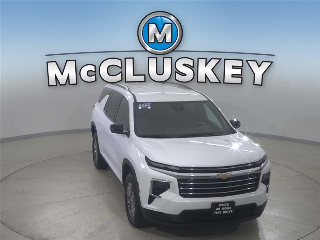 Call McCluskey Chevrolet at 513-741-1111 to schedule your Free 48 Hour Test Drive. MCCLUSKEY CHEVROLETS FREE LIFETIME MECHANICAL WARRANTY Unlimited Miles. Unlimited Years. Fully-Insured. Thousands of import and domestic models to choose from---ALL with FREE LIFETIME MECHANICAL PROTECTION! Call 513-741-1111 to learn more. Certified. Summit White 2024 Chevrolet Traverse LT 2LT 2.5L DOHC Clean CARFAX. Odometer is 879 miles below market average! McCluskeys Fully-Certified 172 Point Inspection, Super low miles...wont last long!, ALL WHEEL DRIVE / AWD, BACK UP CAMERA, THIRD ROW SEATING / 3RD ROW, REMOTE START, AWD.