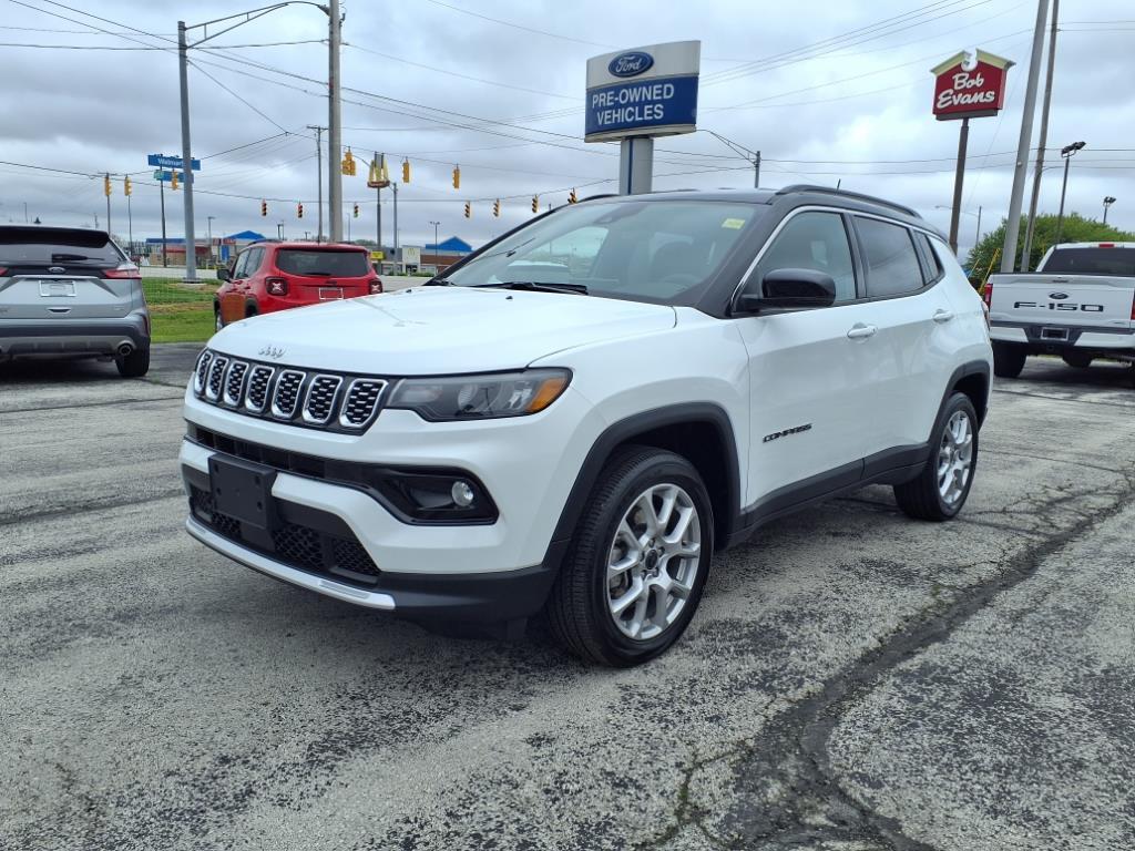 This vehicle is a 2025 Jeep Compass Limited with a 4x4, 2.0 liter 4 cylinder engine, and turbocharged powertrain. It has driven 14,497 miles and has a crash test rating of 4 out of 5 stars. It also comes with a touch screen display, Bluetooth audio connection, blind spot sensor, hill start assist, part time with on demand four wheel drive, Apple Carplay ready, Bluetooth phone connectivity, and leather seats. This car has been meticulously maintained and comes with a Carfax report available for your review. Our motto - Where Friends Send Friends!!! Come visit our showroom today. We are located at 885 Hagerty Drive, Fremont, OH, 43420. Is this the car you've been looking for Contact Debby at (419) 334-9751 or by e-mail at debbyg@advantagefordlincolnsales.com.