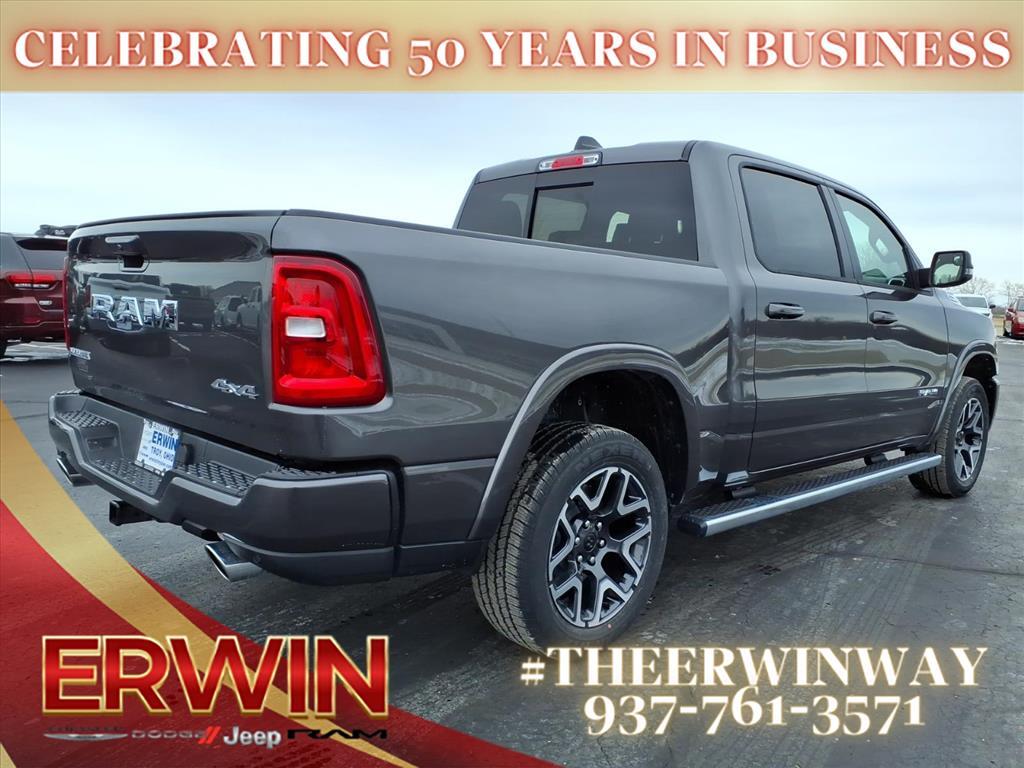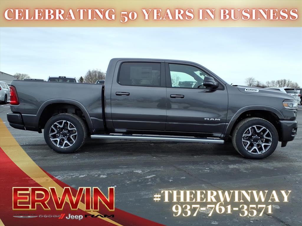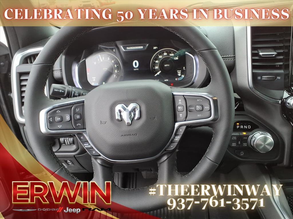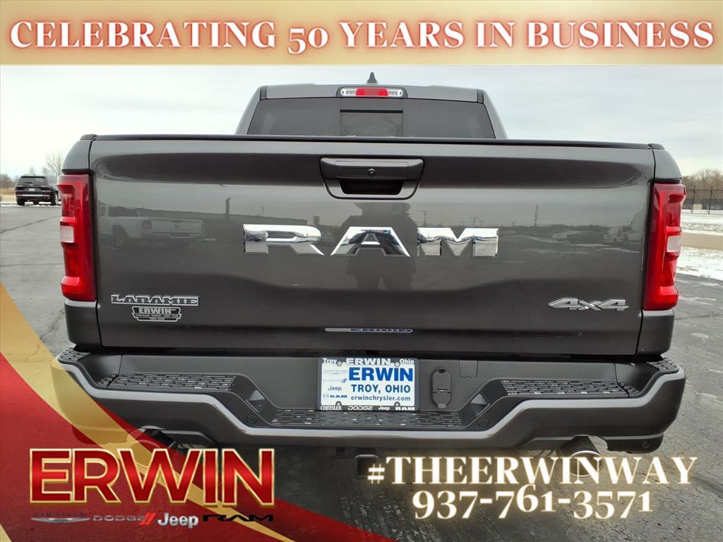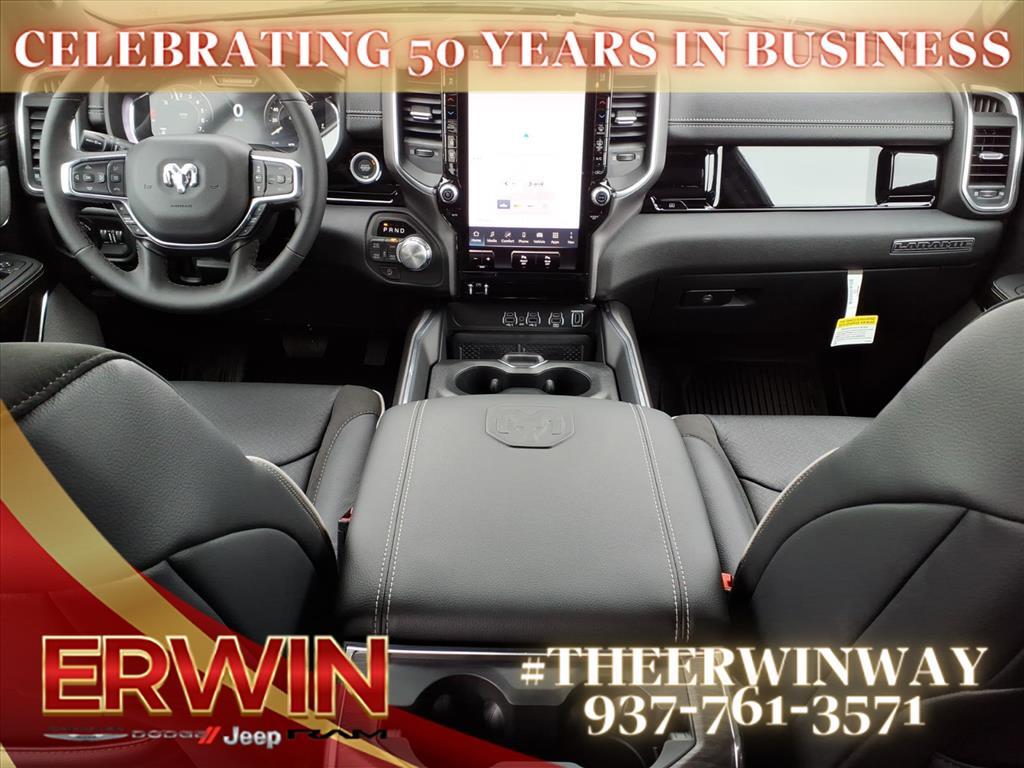The 2026 RAM Crew Cab 4x4, 1500 Laramie is a state-of-the-art motorcar that has been designed to provide its driver with the utmost in safety and comfort. Boasting a 3.0 liter 6 cylinder engine with twin turbochargers, this vehicle has a granite crystal exterior and a black x9 interior. It has been crash tested for 4 out of 5 stars and comes with a range of features including touch screen display, Bluetooth audio connection, blind spot sensor, hill start assist, part time with on demand four wheel drive, navigation system with voice recognition, and Bluetooth phone connectivity. With its combination of style, power, and safety, this automobile is sure to be a hit with car enthusiasts everywhere. Contact Details: Erwin Chrysler Dodge Jeep, 2775 S Co Rd. 25a, Troy, OH, 45373, pat@erwinchrysler.com, 9373355696.