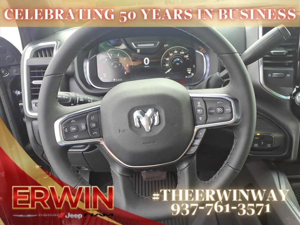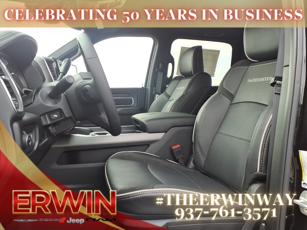The 2026 RAM Crew Cab 4x4, 2500 Laramie is a state-of-the-art motorcar that has been designed to provide its driver with the utmost in safety and comfort. Boasting a 6.7 liter 6 cylinder turbo diesel engine, this vehicle has been crafted to provide power and efficiency, while its diamond black crystal exterior and black x9 interior give it a sleek and modern look. It has been given a crash test rating of 4 out of 5 stars, ensuring that you can travel in complete peace of mind. In addition to its impressive safety features, this automobile also offers a number of convenient features such as touch screen display, Bluetooth audio connection, blind spot sensor, hill start assist, part time four wheel drive, navigation system with voice recognition, and leather-trimmed seats for an unparalleled driving experience. Contact Details: Erwin Chrysler Dodge Jeep, 2775 S Co Rd. 25a, Troy, OH, 45373, pat@erwinchrysler.com, 9373355696.
