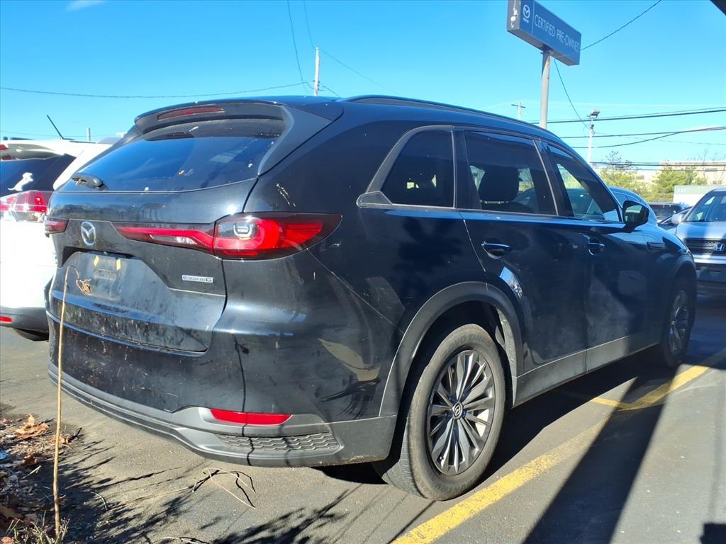 2024 Mazda CX-90 3.3 Turbo Preferred Plus AWD in Jet Black Mica with Black Leather Interior - 15,489 miles. Mazda Certified Pre-Owned.Preferred Plus Package / Interior Features:The cabin is appointed with Black leather seating and includes heated front seats, an 8-way power driver's seat with lumbar, 4-way power passenger seat, Mazda Advanced Keyless Entry, tri-zone automatic climate control, 10.25-inch center display, Apple CarPlayT & Android AutoT, paddle shifters, wireless phone charging, and Mazda Connected Services. This Preferred Plus model also includes 2nd-row captain's chairs, providing premium comfort and easy access to the third row. The Active Driving Display (head-up display) helps keep key information in clear view for the driver.Exterior Highlights:Finished in Jet Black Mica, the CX-90 presents a bold and upscale stance with 19-inch alloy wheels, LED headlights with auto on/off, LED daytime running lights, rear privacy glass, aluminum roof rails, heated power side mirrors with turn lamps, a power moonroof, hands-free power liftgate, and rain-sensing windshield wipers for daily convenience.Performance Specs:Powered by Mazda's 3.3L e-SKYACTIV Turbo inline-6 with M-Hybrid Boost, delivering smooth and responsive power through an 8-speed automatic transmission and standard i-ACTIV all-wheel drive. The setup provides confident acceleration, composed handling, and refined ride quality in varying driving conditions. EPA-rated at 24 MPG city / 28 MPG highway. Safety & Driver Assistance:Equipped with Mazda's full i-ACTIVSENSE suite, including Blind Spot Monitoring with Vehicle Exit Warning, Lane Departure Warning, Lane-Keep Assist, Mazda Radar Cruise Control, Smart Brake Support, Rear Cross Traffic Alert, Rearview Camera, Driver Attention Alert, Rear Seat Alert, and an array of advanced airbags. These systems work together to support safety, visibility, and driver confidence. Mazda Certified Pre-Owned:Includes a 12-Month / 12,000-Mile CPO Limited Warranty and 7-Year / 100,000-Mile Powertrain Limited Warranty from the original in-service date. Every Mazda Certified vehicle undergoes a 160-point inspection, includes zero-deductible repairs, and provides 24/7 Emergency Roadside Assistance, offering long-term protection and peace of mind beyond a standard used vehicle.Peruzzi Automotive Group Perks:Professionally inspected and reconditioned by certified technicians, and includes our