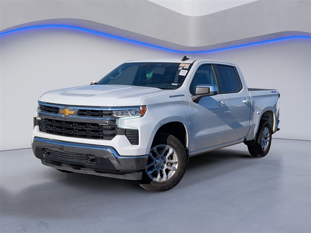Recent Arrival!CARFAX One-Owner. Clean CARFAX.2023 Chevrolet Silverado 1500 LT LT1 Summit White 4D Crew Cab 4WD 2.7L Turbo 8-Speed AutomaticBluetooth, Hands Free Phone, Service Records Available, Fully Detailed, We have all of your financing needs covered. Ask us how to get pre-approved today!, Silverado 1500 LT LT1, 4D Crew Cab, 2.7L Turbo, 8-Speed Automatic, 4WD, Summit White, Jet Black Cloth, 10-Way Power Driver Seat w/Lumbar, 12.3 Multicolor Reconfigurable Digital Display, 120-Volt Bed Mounted Power Outlet, 120-Volt Instrument Panel Power Outlet, 3.42 Rear Axle Ratio, 4-Wheel Disc Brakes, 40/20/40 Front Split-Bench Seat, 6 Speakers, 6-Speaker Audio System, ABS brakes, Air Conditioning, All-Star Edition, Alloy wheels, AM/FM radio: SiriusXM with 360L, Apple CarPlay/Android Auto, Auto High-beam Headlights, Auto-Locking Rear Differential, Automatic Emergency Braking, Automatic temperature control, Bluetooth For Phone, Brake assist, Bumpers: chrome, Chevrolet Connected Access Capable, Chrome Mirror Caps, Cloth Seat Trim, Color-Keyed Carpeting Floor Covering, Compass, Convenience Package, Deep-Tinted Glass, Delay-off headlights, Driver door bin, Driver vanity mirror, Dual front impact airbags, Dual front side impact airbags, Dual Rear USB Ports (Charge Only), Dual-Zone Automatic Climate Control, Electric Rear-Window Defogger, Electrical Steering Column Lock, Electronic Cruise Control, Electronic Stability Control, Following Distance Indicator, Forward Collision Alert, Front anti-roll bar, Front Center Armrest w/Storage, Front dual zone A/C, Front Frame-Mounted Black Recovery Hooks, Front License Plate Kit, Front Pedestrian Braking, Front reading lights, Front wheel independent suspension, Fully automatic headlights, HD Rear Vision Camera, Heated door mirrors, Heated Driver & Front Outboard Passenger Seats, Heated front seats, Heated Steering Wheel, Heated steering wheel, Hitch Guidance, Illuminated entry, IntelliBeam Automatic High Beam On/Off, Keyless Open & Start, Lane Keep Assist w/Lane Departure Warning, LED Cargo Area Lighting, Low tire pressure warning, Not Equipped w/Steering Column Lock, Occupant sensing airbag, OnStar & Chevrolet Connected Services Capable, Outside temperature display, Overhead airbag, Overhead console, Panic alarm, Passenger door bin, Passenger vanity mirror, Power door mirrors, Power driver seat, Power Front Windows w/Driver Express Up/Down, Power Front Windows w/Passenger Express Down, Power Rear Windows w/Ex