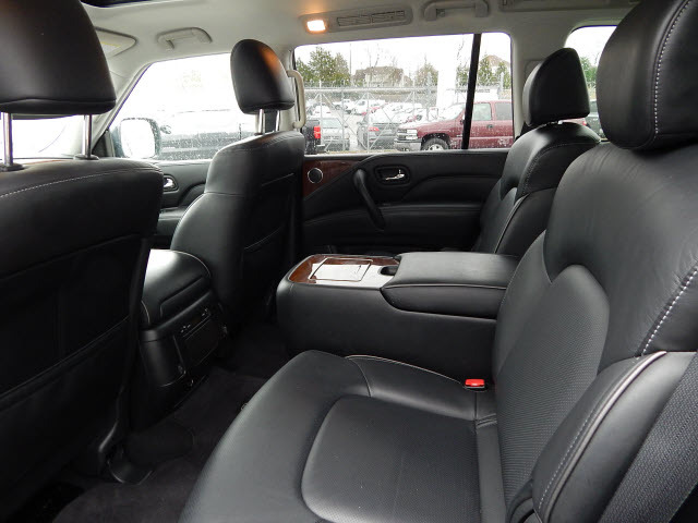 Inside the distinctive QX80 body is an interior long on luxury, including standard Infiniti Hard Drive Navigation System, Around View™ Monitor, Bose® 13-speaker Premium Audio System, available perforated semi-aniline leather seating and an available Tri-Zone Entertainment System with dual seven-inch color monitors, which allows different sources to be played at the same time. The QX80 also offers ample 1st row and class-leading 2nd row roominess.
