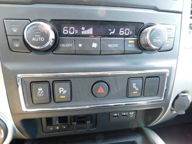 Dual front airbags, front seat mounted side-impact airbags, dual front/rear head curtain airbags with rollover sensor, four-wheel disc brakes with anti-lock, brake assist, electronic brake force distribution, traction control, vehicle dynamic control, high-strength steel side door guard beams, vehicle security system, engine immobilizer, Bluetooth hands free phone system, NissanConnect, remote keyless entry, full-size spare tire, and tire pressure monitoring system. SV adds trailer sway control. PRO-4X adds automatic headlights, daytime running lights, fog lights, navigation system, rain-sensing windshield wipers, RearView Monitor, blind spot warning, and rear cross traffic alert. SL adds remote engine start, HomeLink universal transceiver, and front/rear sonar systems. Platinum Reserve adds trailer brake controller, and Around View Monitor.