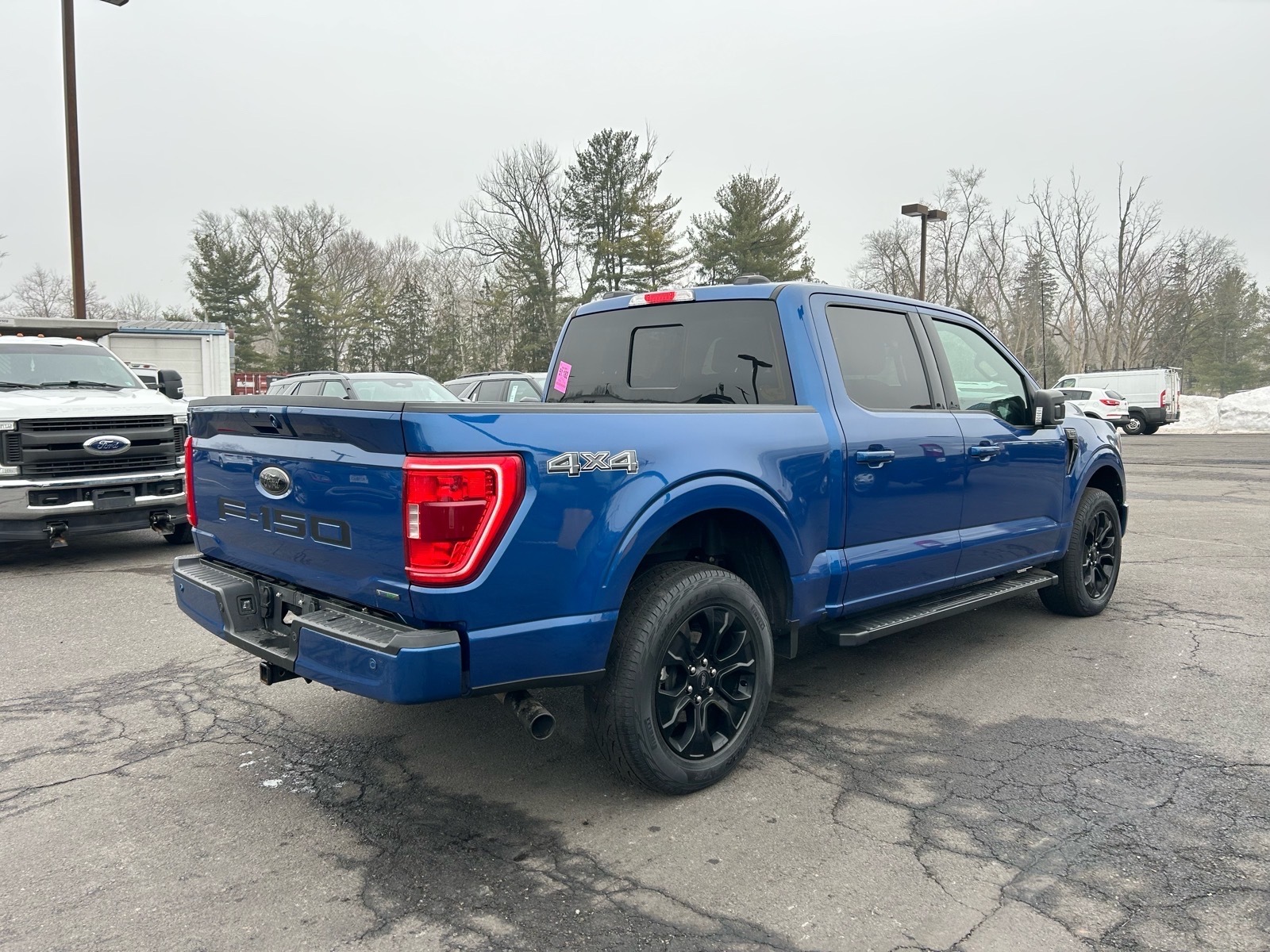 This vehicle is a 2022 Ford Supercrew 4x4 F-150 XLT, with low mileage of 30,376 miles. It has an atlas blue metallic exterior and a black interior, making it both stylish and practical. Under the hood, it has a 2.7 liter 6 cylinder engine with twin turbo, providing an impressive 17 mpg in the city and 23 mpg on the highway. The vehicle also comes with a crash test rating of 5 out of 5 stars, making it one of the safest cars on the road today. Other features include blind spot sensor, hill start assist, and part time four wheel drive, making this car an excellent choice for anyone looking for a reliable motorcar.