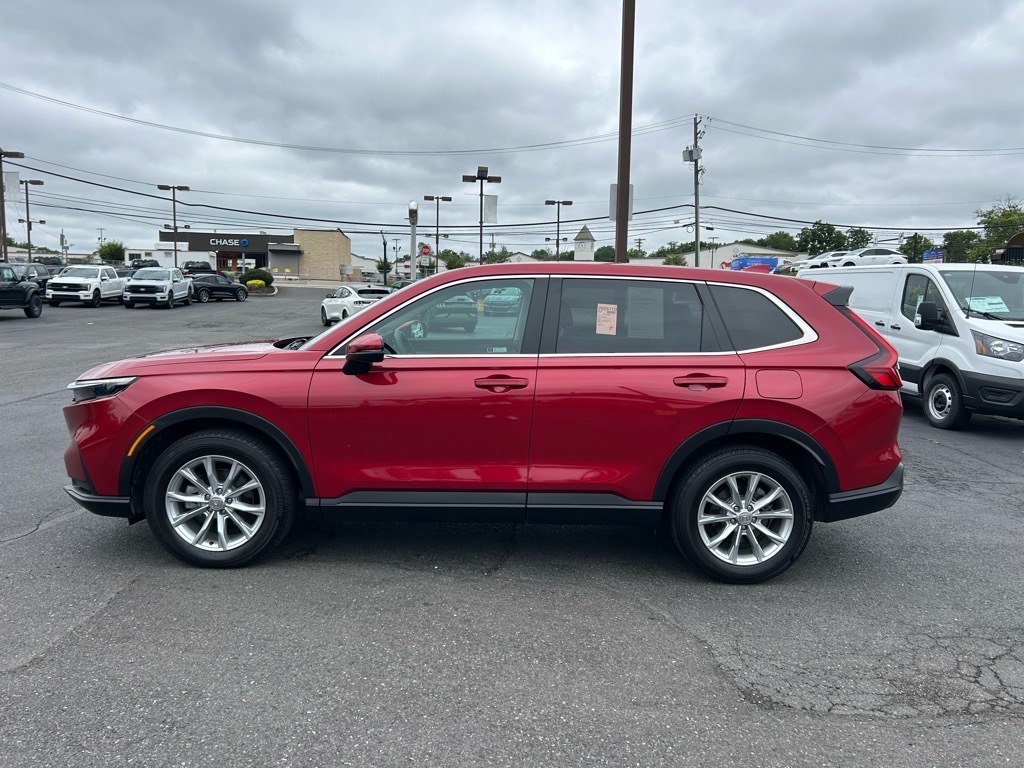 This 2025 Honda CR-V EX SUV is a vehicle that is sure to turn heads. With its low mileage of 8,188 miles, this all wheel drive car has plenty of life left in it. It features a radiant red metallic exterior and a 1.5 liter 4 cylinder engine with turbocharging, providing a smooth ride and great fuel economy of 26 mpg in the city and 31 mpg on the highway. The blind spot sensor, hill start assist, and on demand four wheel drive make this car even more reliable and safe. Inside, you'll find a black interior with plenty of features such as blind spot sensor, and hill start assist to make your journey more comfortable. This car is sure to turn heads wherever you go!