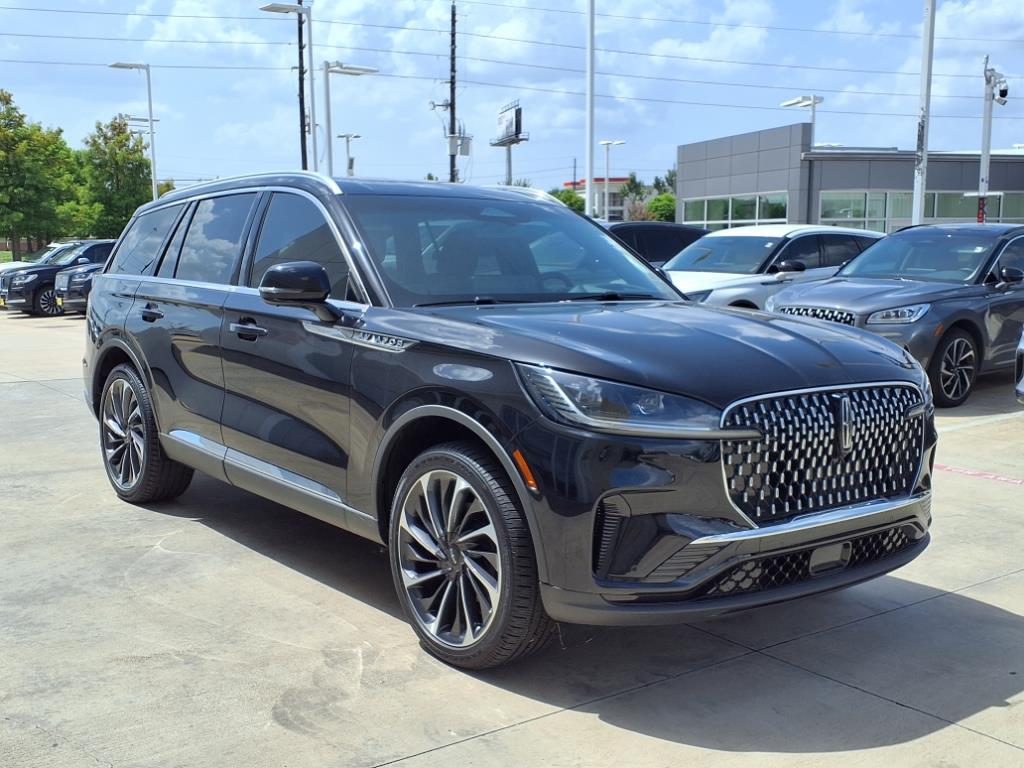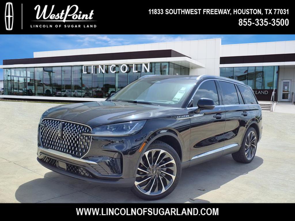 Displayed pricing offered for Texas residents only.West Point Lincoln Sugar Land is pumped up to offer this terrific-looking 2025 Lincoln Aviator Reserve in Black Metallic with Hot Chocolate interior. Well equipped with Equipment Group 200A (Advanced Heads-Up Display, Auto Air Refresh, Lincoln BlueCruise Equipped (4-Years Included), and Wireless Charging Pad), Illumination Package (Adaptive Dynamic Bending Lighting, Adaptive Pixel LED Headlamps, Illuminated Lincoln Star in Grille, Lincoln Dynamic Signature Lighting, and Speed Dependent Lighting), 14 Speakers, 3rd row seats: split-bench, 4-Wheel Disc Brakes, 40/Mini Console/40 Dual Captain's Chairs, ABS brakes, Adaptive suspension, Air Conditioning, All-Weather 1st & 2nd Row Floor Liners, Alloy wheels, AM/FM radio: SiriusXM, Apple CarPlay/Android Auto, Audio memory, Auto High-beam Headlights, Auto-dimming door mirrors, Auto-dimming Rear-View mirror, Automatic temperature control, Brake assist, Bumpers: body-color, Compass, Delay-off headlights, Driver door bin, Driver vanity mirror, Dual front impact airbags, Dual front side impact airbags, Electronic Stability Control, Four wheel independent suspension, Front anti-roll bar, Front Bucket Seats, Front Center Armrest, Front dual zone A/C, Front License Plate Bracket, Front reading lights, Fully automatic headlights, Garage door transmitter, Heads-Up Display, Heated door mirrors, Heated front seats, Heated steering wheel, HVAC memory, Illuminated entry, Knee airbag, Leather steering wheel, Lincoln Digital Experience, Low tire pressure warning, Memory seat, Navigation system: Connected Navigation (1-year trial), Occupant sensing airbag, Outside temperature display, Overhead airbag, Overhead console, Panic alarm, Passenger door bin, Passenger vanity mirror, Power door mirrors, Power driver seat, Power Liftgate, Power moonroof: Panoramic Vista Roof, Power passenger seat, Power steering, Power windows, Premium Lthr Heated/Ventilated Fnt Captain's Chairs, Radio d