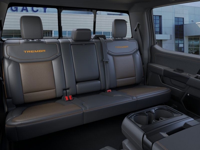 Carbonized Gray Metallic 2025 Ford F-150 Tremor 4WD 10-Speed Automatic 3.5L V6 EcoBoost 4WD. Bed Utility Package (4 Pickup Box Tie-Down Plates, LED Box Lighting, and Power Tailgate), Equipment Group 402A High (2nd Row Heated Seats, Ambient Lighting, Auto-Dimming Rear-View Mirror, Front Axle w/Torsen Differential, Heads-Up Display, Heated Steering Wheel, LED Taillamps, Media Bin Door, Modular Front Bumper & Carbon Black Rear Bumper, Power Glass Heated Sideview Mirrors, Power-Adjustable Pedals w/Memory, Premium Wrapped Steering Wheel, Radio: B&O Unleashed Sound System by Bang & Olufsen, Rain-Sensing Wipers, Two-Speed Automatic AWD w/Mechanical Locking 4WD, Unique Tremor Leather-Trimmed Bucket Seats, and Universal Garage Door Opener), GVWR: 7,100 lbs Payload Package, Mobile Office Package (Console Worksurface, Partitioned Lockable Rear Storage, and Wireless Charging), Tow/Haul Package (Integrated Trailer Brake Controller), 4WD, 4-Wheel Disc Brakes, 8 Speakers, ABS brakes, Adjustable pedals, Air Conditioning, Alloy wheels, AM/FM radio: SiriusXM with 360L, Auto High-beam Headlights, Auto-dimming door mirrors, Auto-dimming Rear-View mirror, Automatic temperature control, Brake assist, Bumpers: body-color, Compass, Delay-off headlights, Driver door bin, Driver vanity mirror, Dual front impact airbags, Dual front side impact airbags, Electronic Locking w/3.73 Axle Ratio, Electronic Stability Control, Emergency communication system: SYNC 4 911 Assist, Front anti-roll bar, Front Bucket Seats, Front Center Armrest, Front dual zone A/C, Front fog lights, Front License Plate Bracket, Front reading lights, Front wheel independent suspension, Fully automatic headlights, Heated door mirrors, Heated front seats, Illuminated entry, Low tire pressure warning, Navigation system: Connected Navigation, Occupant sensing airbag, Outside temperature display, Overhead airbag, Overhead console, Panic alarm, Passenger door bin, Passenger vanity mirror, Power door mirrors, Power driver seat, Po