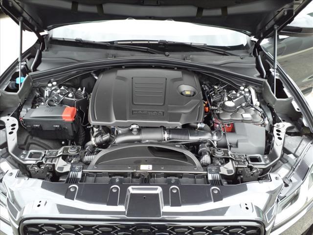 Dual front airbags, front seat-mounted side-impact airbags, dual front/rear head curtain airbags, four-wheel disc brakes with anti-lock, torque vectoring by braking, dynamic stability control, traction control, roll stability control, adaptive surface response intelligent dynamic driveline, emergency brake assist, cruise control with automatic speed limiter, hill launch assist, trailer stability assist, rain sensing windshield wipers, automatic headlamps, Bluetooth hands free phone system, perimeter alarm, engine immobilizer, Jaguar Smart Key system with keyless start, and tire pressure monitoring system. Premium adds HomeLink garage door opener, and rear view camera. Prestige adds Xenon high intensity discharge (HID) headlamps, LED daytime running lights, navigation system, front/rear parking aids, and keyless entry. R-Sport adds automatic LED adaptive headlights with intelligent high beams, lane keep assist, driver fatigue alert, blind spot monitor with closing vehicle sensing, reverse traffic detection, autonomous emergency braking with pedestrian detection, and front fog lamps. First Edition adds park assist, surround camera system, heads-up display, traffic sign recognition, adaptive speed limiter, and adaptive cruise control with queue assist.